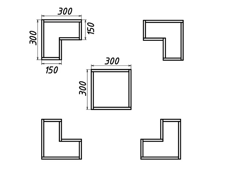 Универсальная секция Смарт 1 представляет собой набор открытых ниш геометрической формы, которые можно сочетать между собой в нескольких положениях.