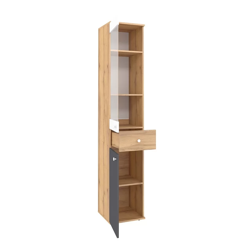 Ширина (мм): 400 Высота (мм): 2113 Глубина (мм): 400 Материал: ЛДСП Цвет: Дуб Золотистый/Белый/Графит Коллекция: Лойс