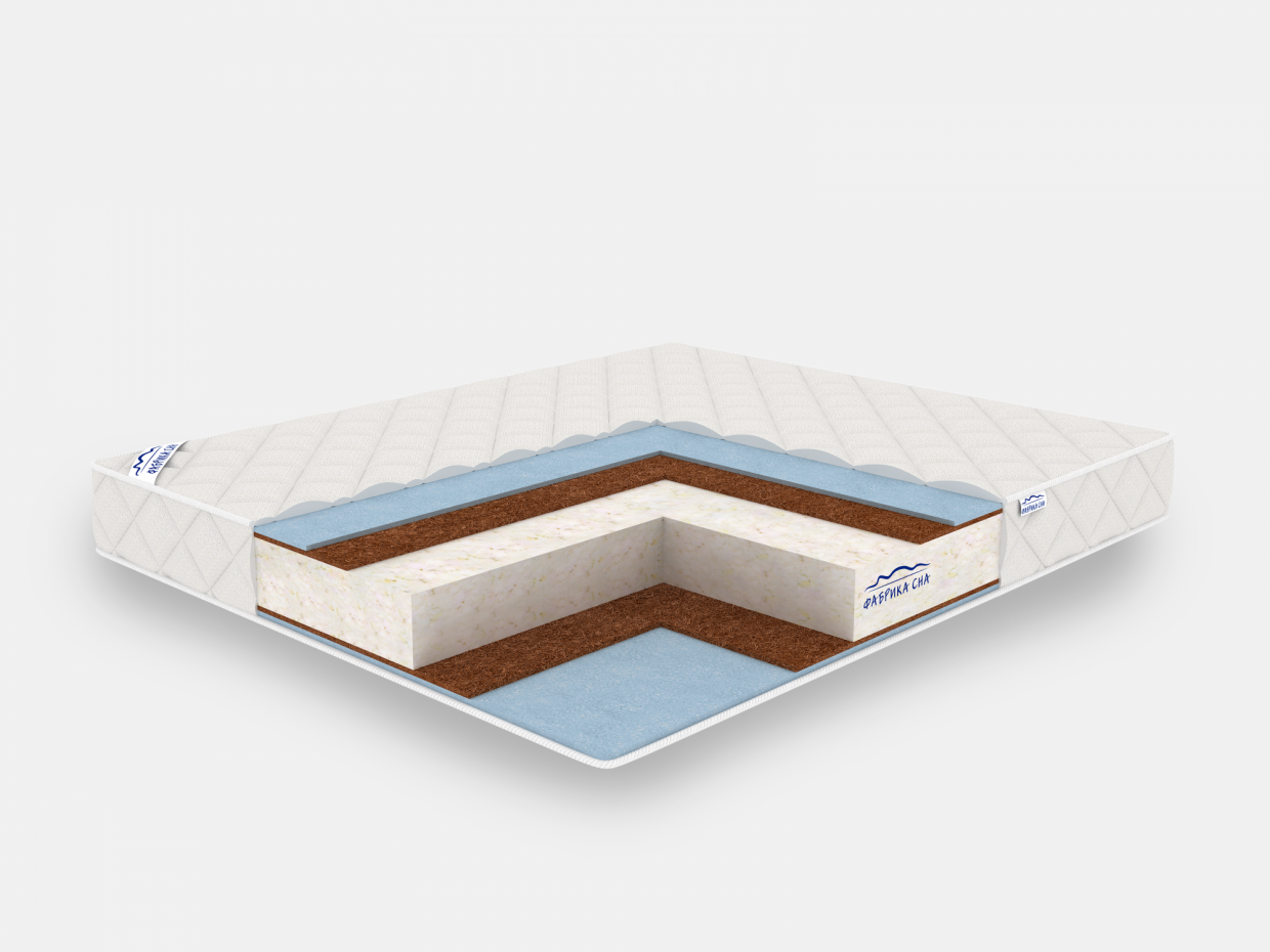 Состав: Пена - 1 см/Кокосовая койра - 1 см/Высокоэластичный пенополиуретан вторичного вспенивания - 14 см/Кокосовая койра - 1 см/Пена - 1 см