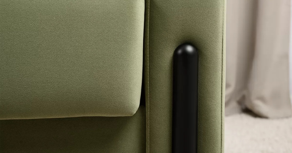 • Металлические опоры плавно переходят в декоративный элемент подлокотника. Декоративная утяжка по приспинным подушкам