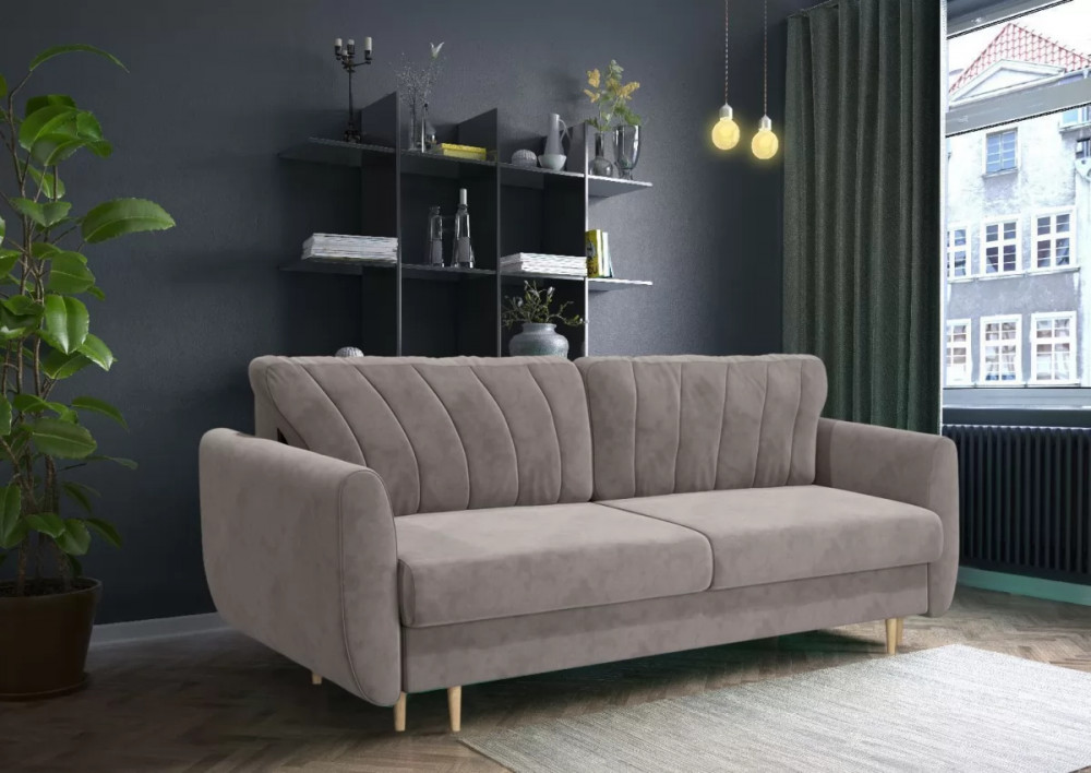 Эффектный, удобный и уютный - таким и должен быть диван-кровать. Кроме комфортного дивана, Тефи предлагает и просторное место для сна - идеальный вариант для помещений, в которых каждый квадратный метр на счету. Этот диван-кровать отлично подойдет для гостиных, небольших спален, гостевых комнат. Модель имеет классический лаконичный внешний вид - вольется в любой интерьер, станет его элегантной частью. Необычной формы подушки с интересной прострочкой добавят дивану стиля. В производстве диван-кровати используются натуральные высококачественные материалы. Механизм трансформации Еврокнижка прост и надежен - его сможет освоить даже ребенок. Мягкие естественные оттенки диван-кровати выгодно смотрятся в помещении, радуя глаз.