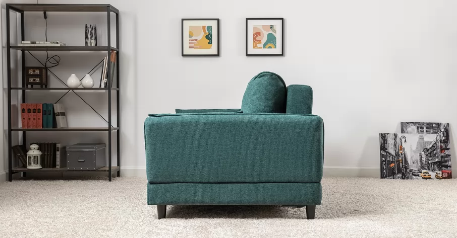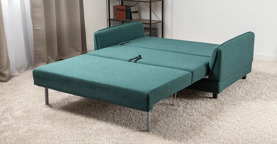 Лаконичный дизайн с деревянными ножками и узкими подлокотниками удачно дополнит не только интерьер гостиной, но и кабинета, и кухни. Кроме того, диван Макс позволяет организовать спальное место в ограниченном пространстве.