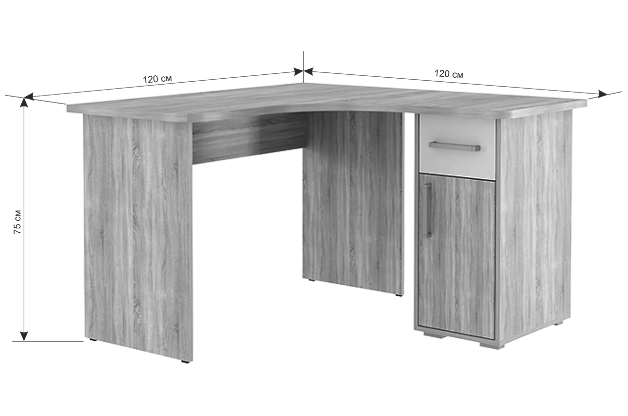 Стол компьютерный 1200 угловой Лайт-1 дуб сонома/белый в Челябинске