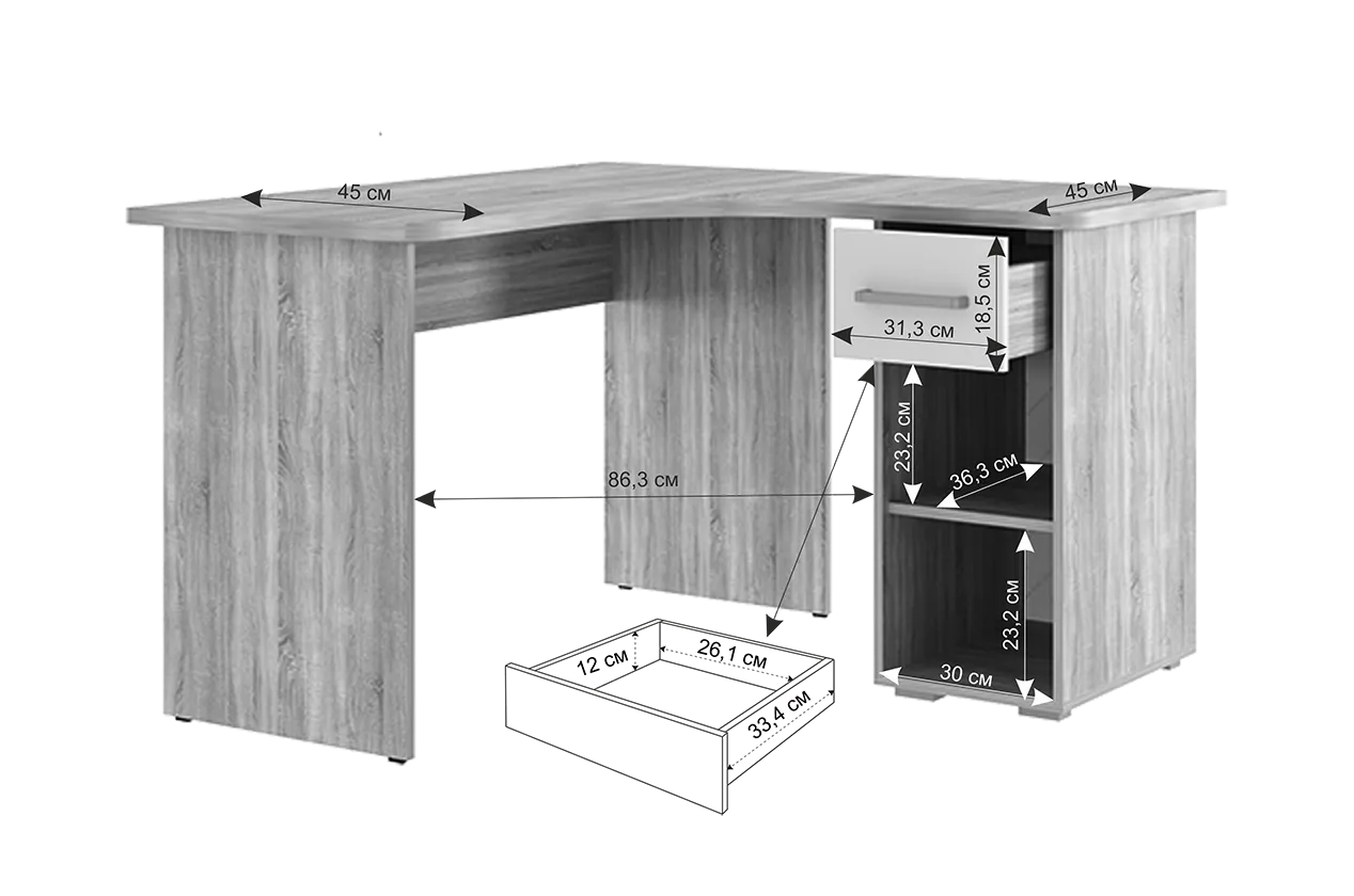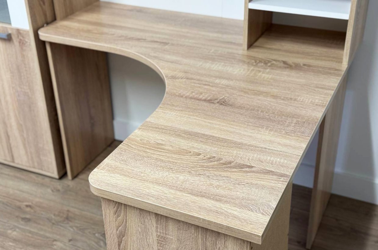 Угловой компьютерный стол «Лайт-1» может быть дополнен функциональной надстройкой и стеллажом той же серии. Главными особенностями данной серии являются радиусные элементы и утолщенная столешница – 25 мм. Сочетание удобства, лаконичности и простоты – идеальное решение для Вашего рабочего места.