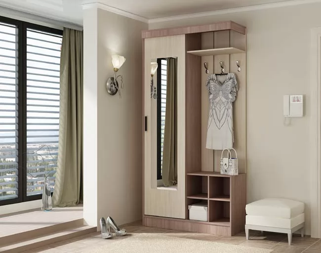 Система купе. ЛДСП толщиной 16мм., кромка ПВХ, высокопрочные крючки. Регулируемые по высоте опоры. Зеркало с фацетом, штанга выдвижная.