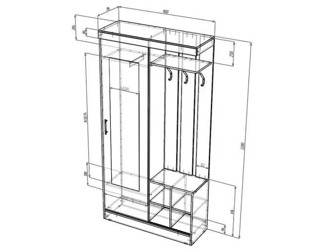 Габариты 1100(Ш) х 400(Г) х 2200(В) мм.