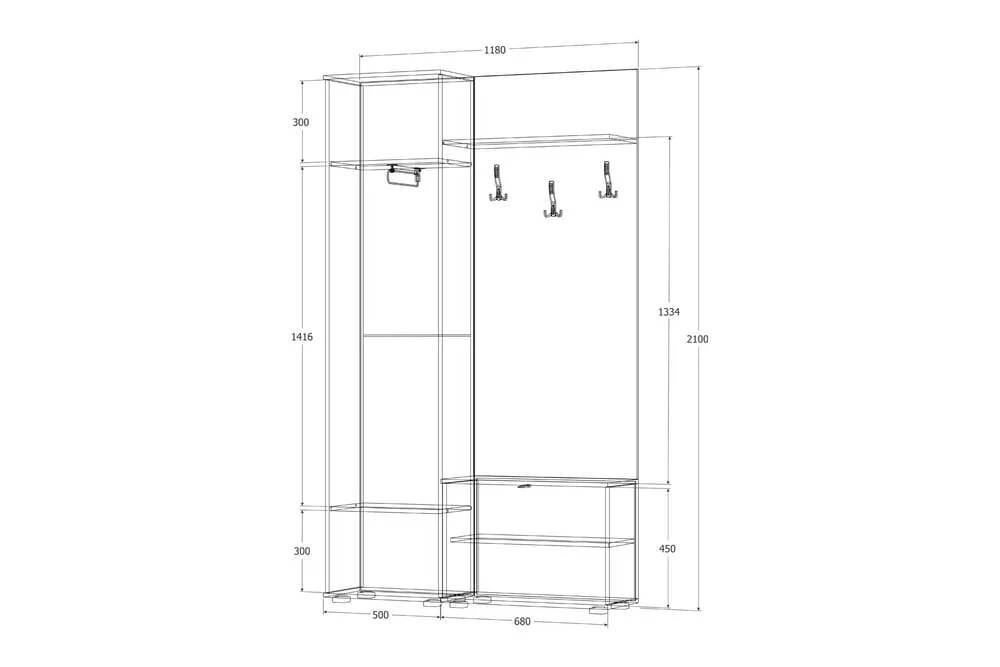 *Размеры (ВхШхГ), мм:2100x1180x361 мм
