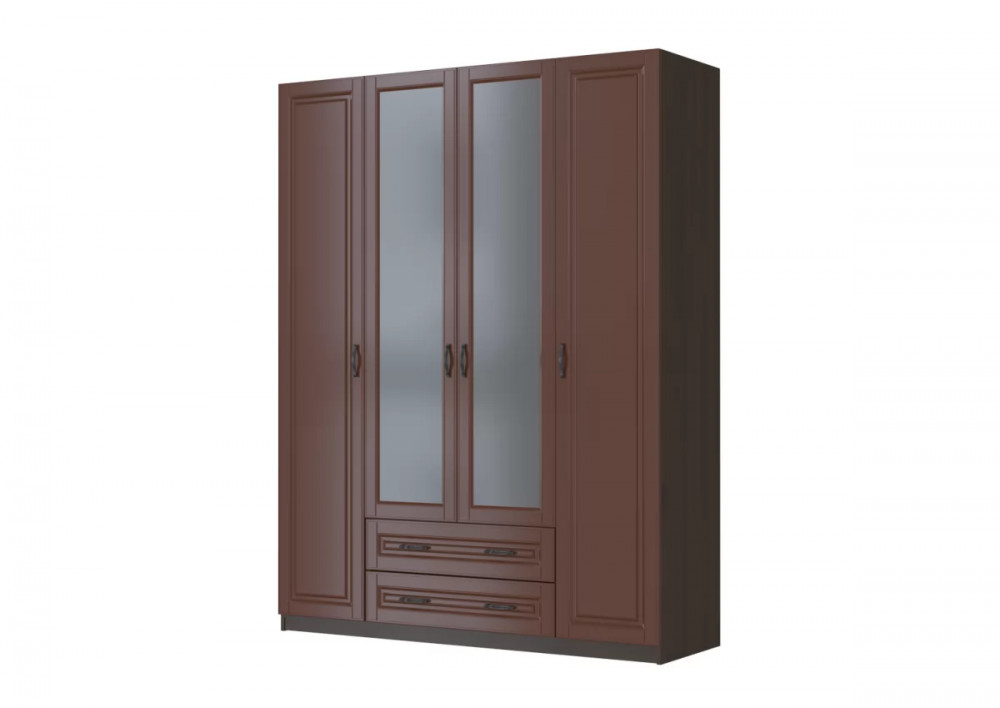 Глубина-516 мм Ширина-1640 мм Высота-2130 мм Срок службы-7 лет Гарантийный срок-18 месяцев Монтаж-Требует сборки Фрезеровка фасада-Да Количество жестких полок-3 шт Материал фасада-МДФ 16 мм, Зеркало 4 мм Материал корпуса-ЛДСП 16 мм Материал полок-ЛДСП Вариант отделки фасада-Отделка лаком Количество дверей-4 шт Фурнитура-Шариковые направляющие полного выдвижения, Штанга для одежды Коллекция-Спальня «Кантри» орех лак Цвет корпуса-Орех шоколадный Цвет фасада-Орех лак Количество вкладных полок-6 шт Количество выдвижных ящиков-2 шт