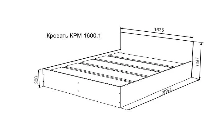 МОРИ КРМ1600.1/1 Кровать (сп/м 1600*2000мм), ЛДСП графит (МП/2) НАСТИЛЫ в Челябинске