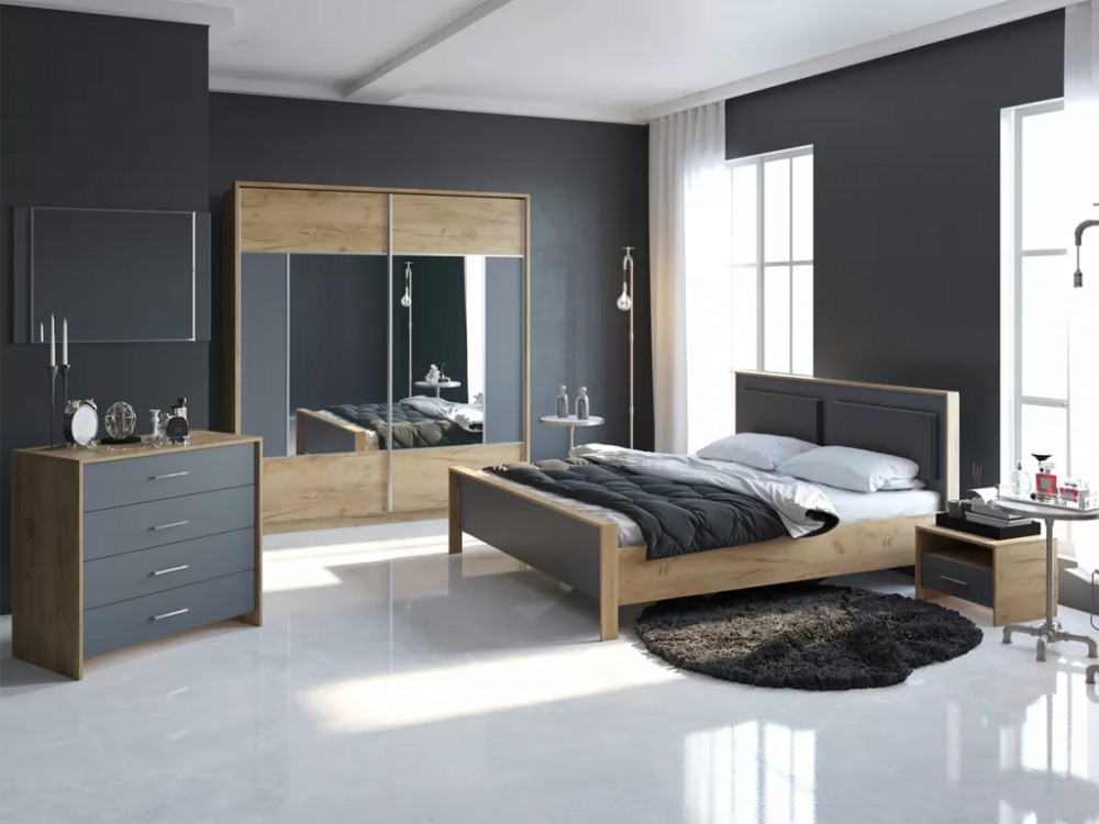 Спальный гарнитур Либерти Дуб крафт золотой/Антрацит в Челябинске