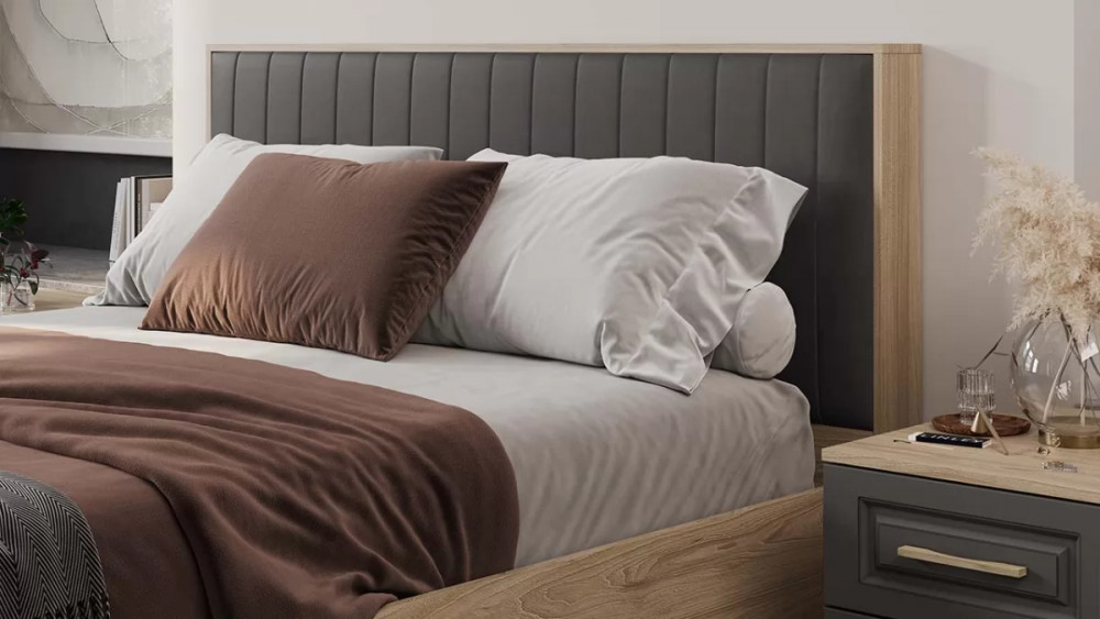 Спальный гарнитур «Сэнди» №4 Вяз благородный, Серый вулкан, Велюр Графит в Челябинске