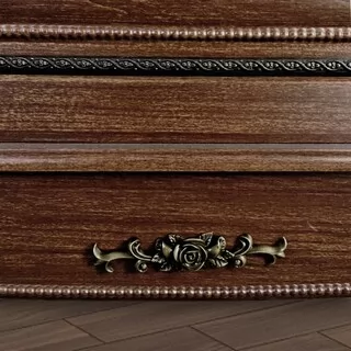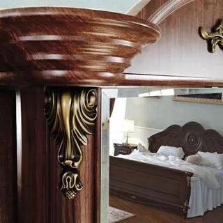 Спальный гарнитур выполнен в классическом стиле. Это изысканный дизайн с резными элементами и декором. Овальное изголовье, рисунки на фасадах, придают мебели для спальни эффект дороговизны и благородства. Такая спальня способна восхищать и удивлять. Вы можете приобрести как весь комплект, так и по отдельности. Изделия отвечают всем стандартам и имеют длительный срок эксплуатации.