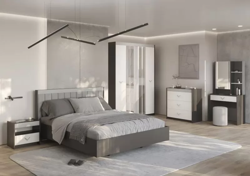 СТЕФАНИ Спальня №1, ЛДСП Графит-МДФ Серый софт/ЛДСП Рамух белый в Челябинске